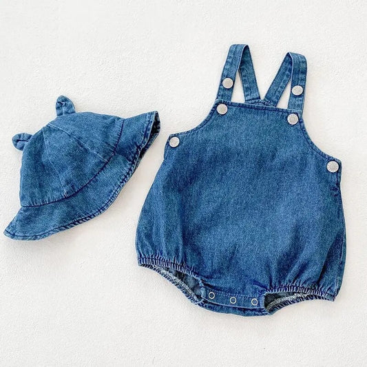 Bear Denim Romper + Hat