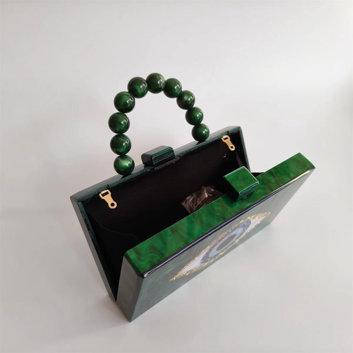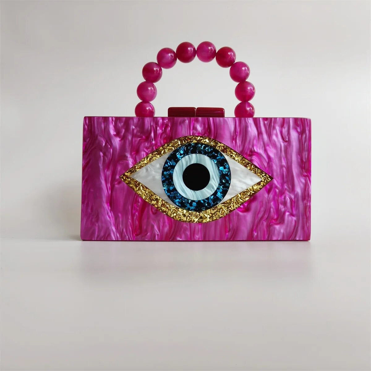 Acrylic Evil Eye Box bag with attachable gold shoulder chain