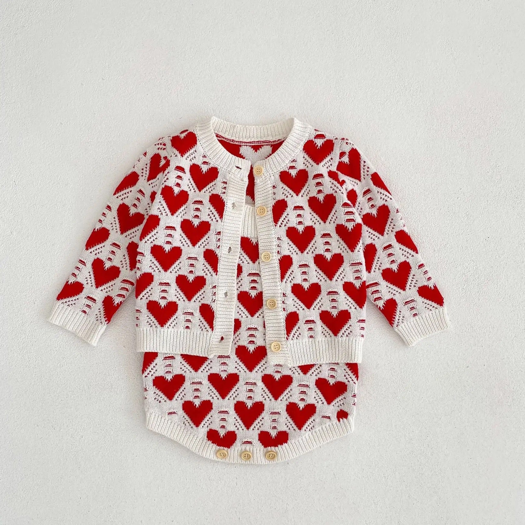 In Love Heart Print Romper and Cardigan Set