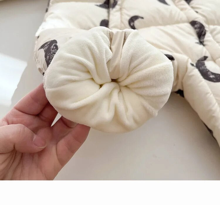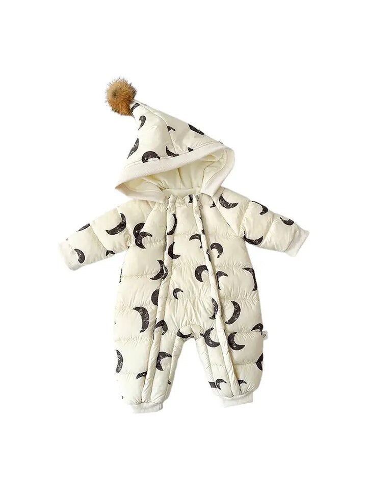 Moon padded fleece lined snowsuit with Pom Pom faux fur hood.