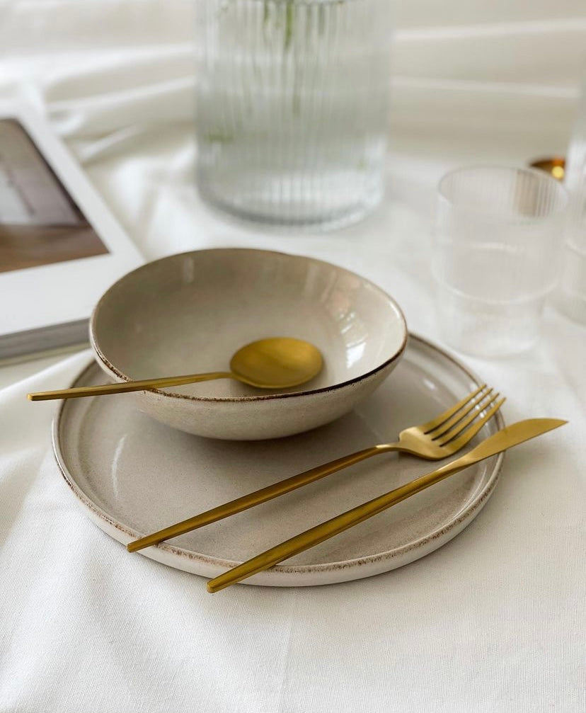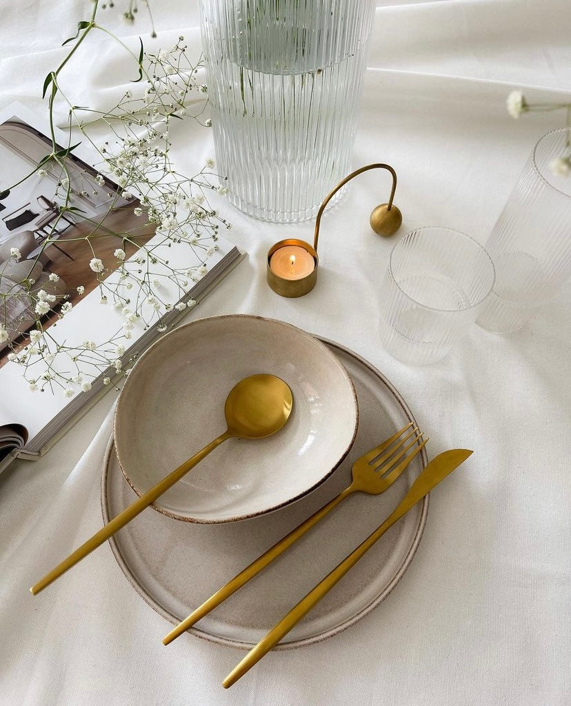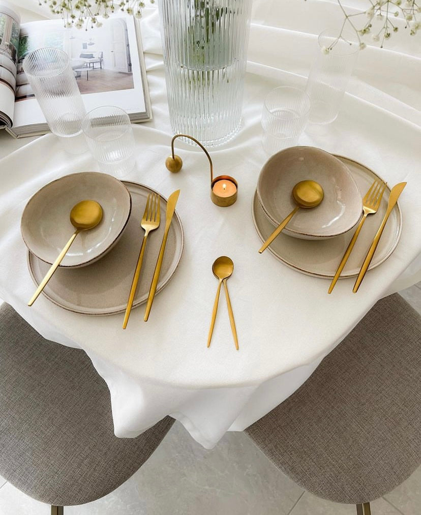 Absolutely stunning matte gold 4 piece cutlery set to finish off any table decor. Impress your guests with these stylish flatware ⭐️